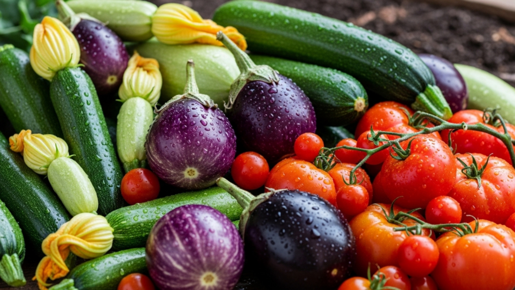 Plant later-season vegetables, keep crops well-watered, and use organic fertilizer if needed.